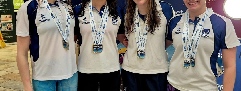 Our Intermediate A relay team of Chloe Stewart (Year 10), Zara Reid (Year 12), Hannah Morgan (Year 11) and Grace Newell (Year 11) are Ulster Champions in the 200m Freestyle Relay. They also claimed Silver in the Medley Relay.