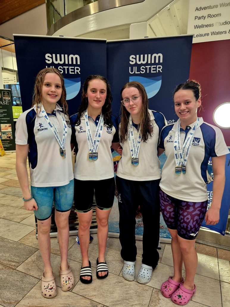 Our Intermediate A relay team of Chloe Stewart (Year 10), Zara Reid (Year 12), Hannah Morgan (Year 11) and Grace Newell (Year 11) are Ulster Champions in the 200m Freestyle Relay. They also claimed Silver in the Medley Relay.